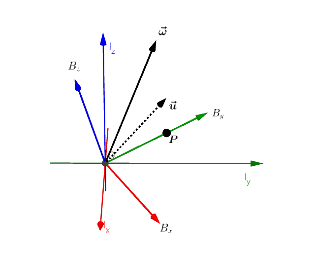 그림 1 : 벡터 u로 회전된 좌표계 B와 각속도 벡터