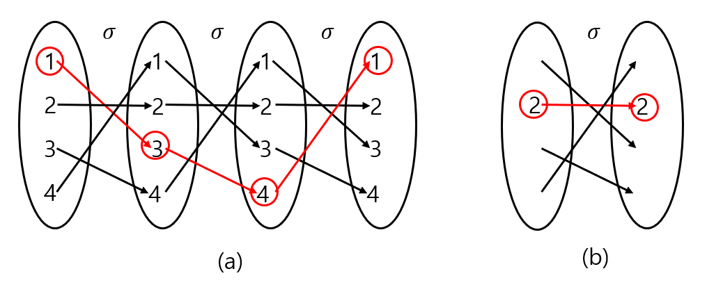 결국, 이러한 과정을 통해 모든 순열은 disjoint cycle representation으로 나타낼 수 있음을 알 수 있다.