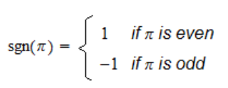 $sgn(\sigma) = (-1)^m, \quad m$는 순열 $\sigma$을 두 원소의 교환(transposition)으로 나타낼 때 필요한 교환의 개수