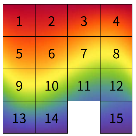 슬라이딩 퍼즐의 조각은 1~15까지의 숫자와 하나의 빈칸으로 이루어져 있다.