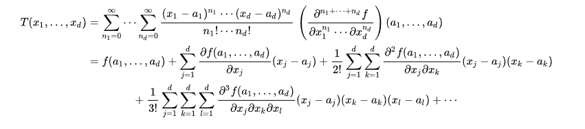다변수 함수로의 테일러 확장은 다음과 같이 정의된다 :